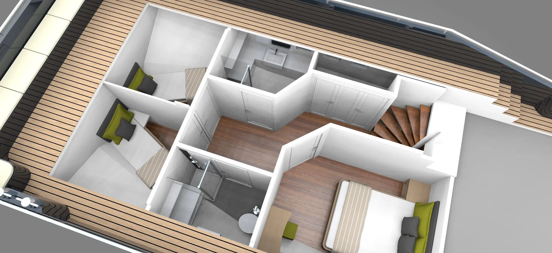 No problem As”Plug & Play solution“You will be offered the perfect installation of your bathroom and kitchen furniture. Together with the yacht architect, you plan the bathroom, specify the position of connections, sockets, outlets, etc., and it is built with millimetre precision so that you can enjoy your dream furniture on the water. Design your second life according to your wishes. We advise you individual and comprehensive, from planning to financing.