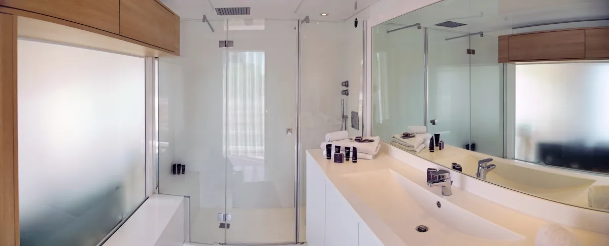 Um eine maximale Autarkie zu gewährleisten, werden 1,5 Tonnen Batterien in den Schwimmern gelagert und versorgen das Boot mit Energie. Sie können durch Solarpaneele, Landstromanschlüsse oder durch den 18 kW starken Generator aufgeladen werden. Darüber hinaus ist der Einbau einer Abwasseraufbereitungsanlage und eines Wasserreinigungssystems als Option möglich und ermöglicht gleichzeitig Komfort, Nachhaltigkeit und Unabhängigkeit.