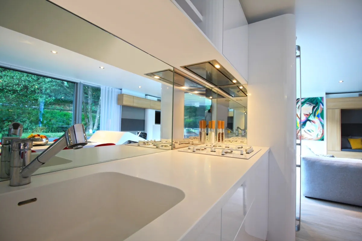 Auf dem Wasser zu leben bedeutet nicht unbedingt, auf einen komfortablen und einfachen Lebensstil zu verzichten. Boat verpflichtet sich in der Tat, ein optimales Komfortniveau zu bieten und möchte sich von dunklen und engen Kähnen durch Helligkeit, weite Räume und eine verstärkte Stabilität unterscheiden. Diese Hausboote der neuen Generation zeichnen sich durch ein schlichtes und modernes Design, hochwertige Möbel und Ausstattungen sowie modernste Technologie aus.